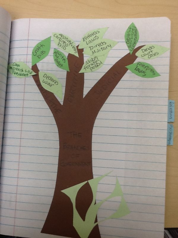 Students illustrated what they knew about the three branches of government by making a tree in their notebooks.