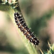 Even young children can observe and record their observations. We begin our observations while the insects are in their larva stage. This is a painted lady butterfly caterpillar or larva.