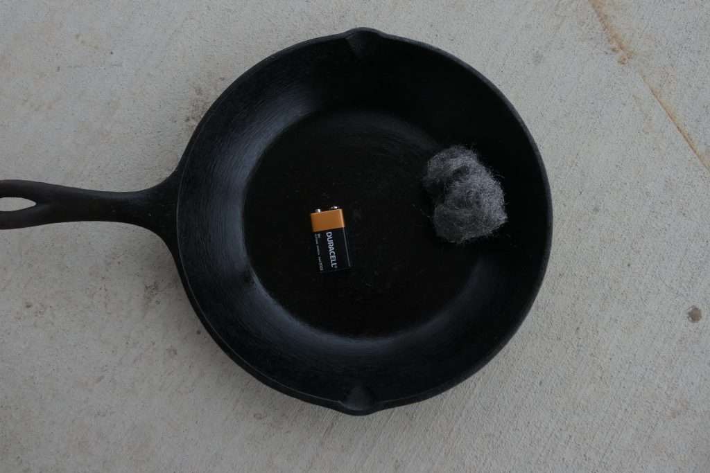 Step Five: Using a 9-volt battery, touch both ends to the steel wool.