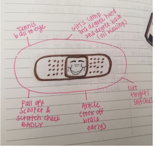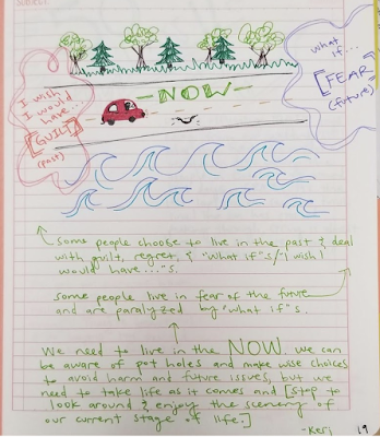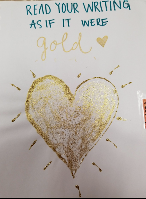 Integrated within each class was a minimum of five minutes dedicated to adding something to their notebook. It could be a picture, a poem, a few words, a ticket stub, a card, a quote, a recipe…anything that inspired their writing. They were also assigned to make daily entries in their notebook.