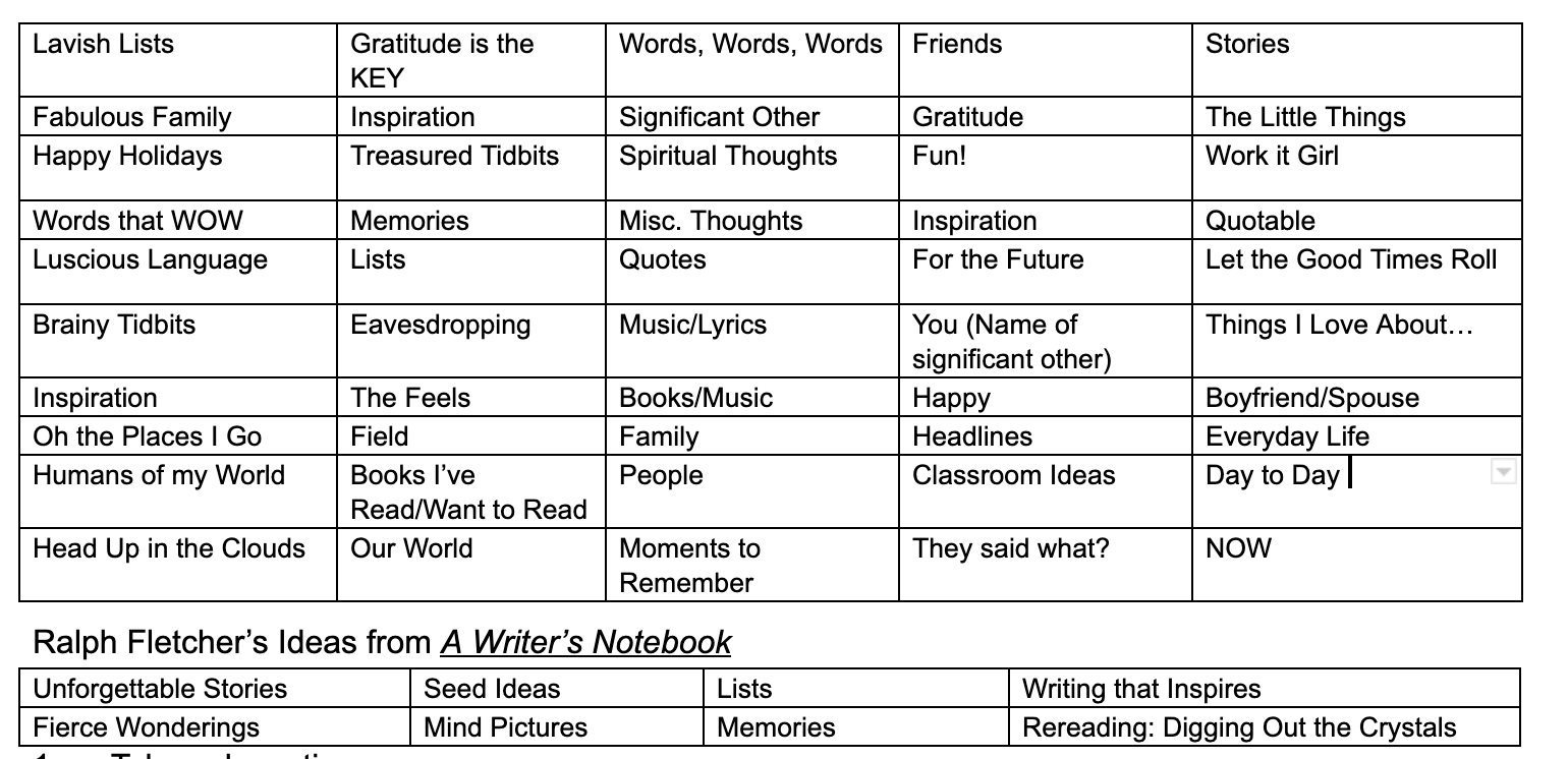 Ralph Fletcher’s Ideas from A Writer’s Notebook