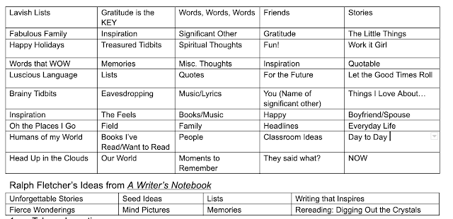 Notebooks are Burlington Coat Factory, TJ Maxx, and Ross. Read Ralph Fletcher’s Book, A Writer’s Notebook: Unlocking the Writer Within