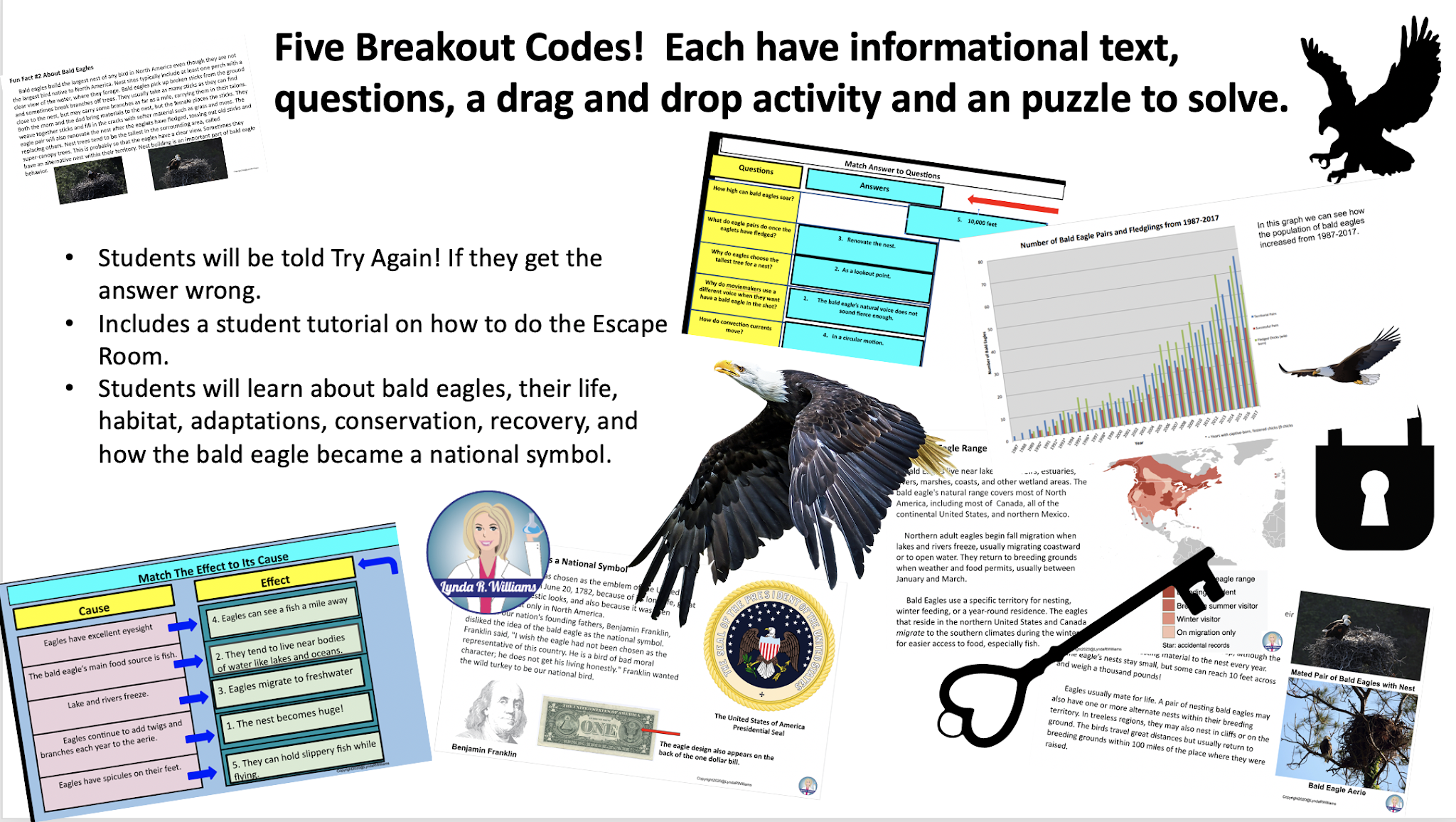 These escape rooms are great for distance learning. Students read informational text and complete drag and drop activities to solve the clues that will help them BREAKOUT.