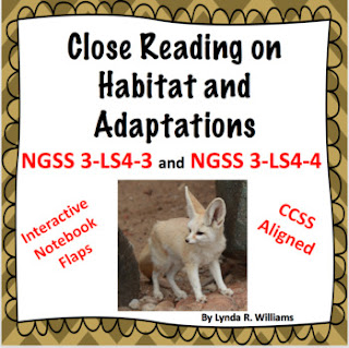 Next I have students read some informational text about ecosystems, abiotic and biotic factors, habitat related to whatever standards I am trying to hit. I like to do this in a CLOSE Reading Format followed by Interactive notebook Flaps.