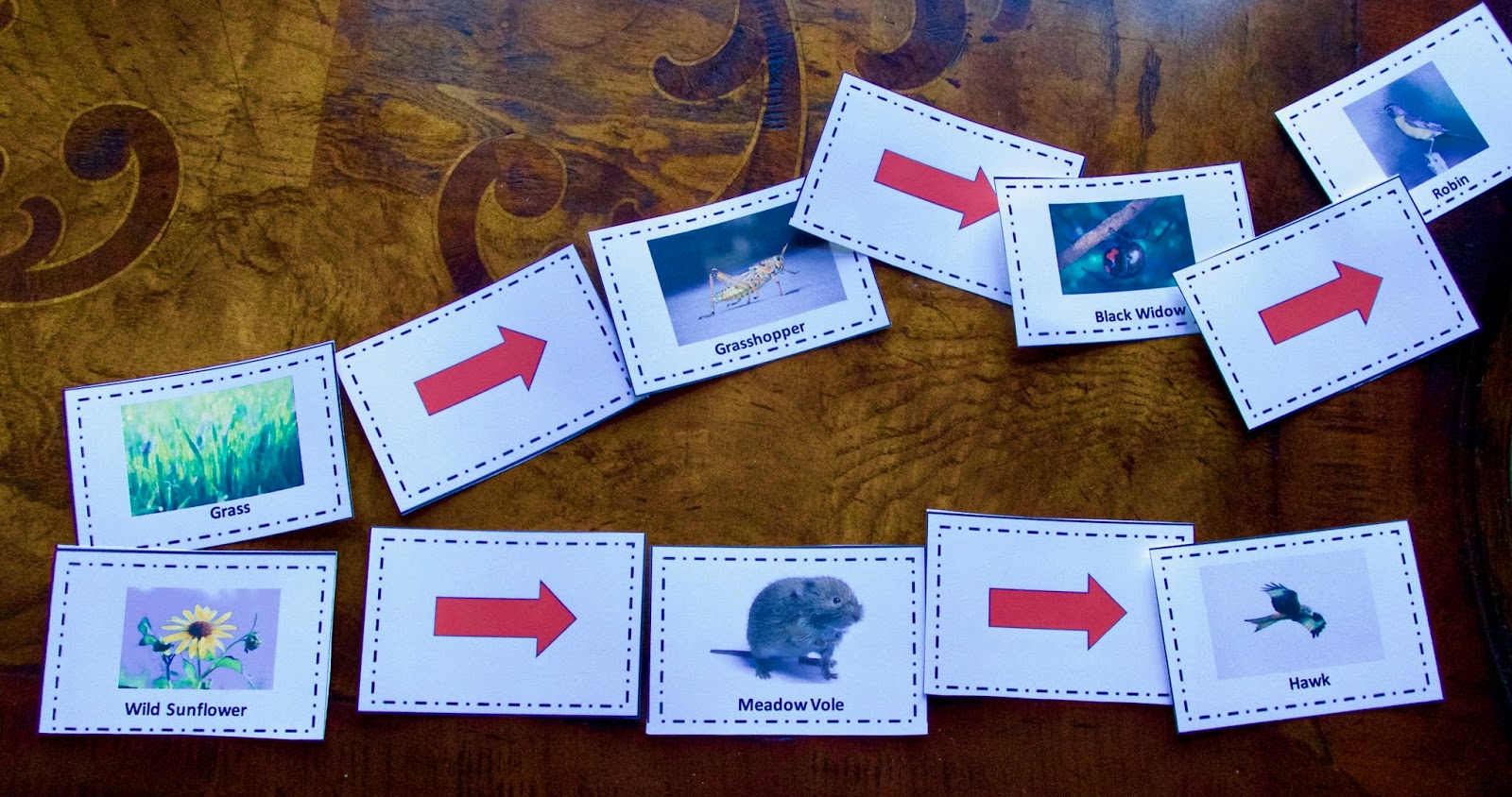 1. Hand out cards with names of organisms on them and maybe pictures. 2. Students try to identify if they are a producer, consumer, secondary consumer or decomposer.