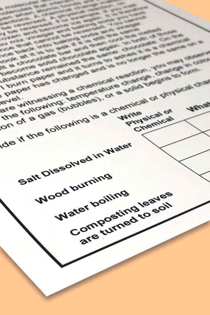 - A reading page on Chemical vs Physical Changes