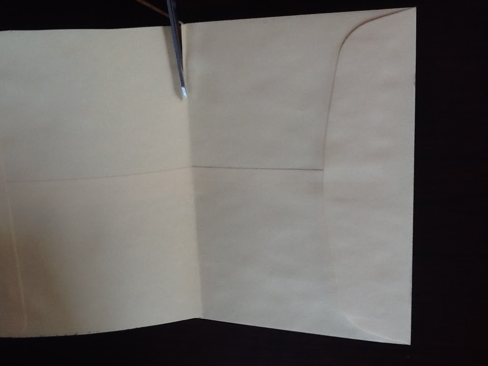 Start with a manila envelope. I like small ones so that the journal will be pocket sized, but you can use any size. Fold in half with the flap going towards the center.