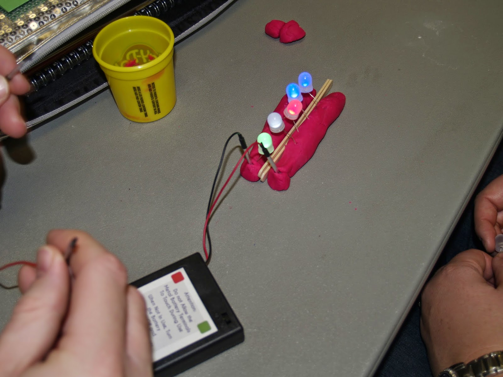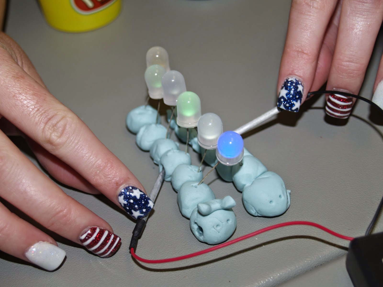 First I hand each group of students the squishy circuit kit and a ball of play-doh.