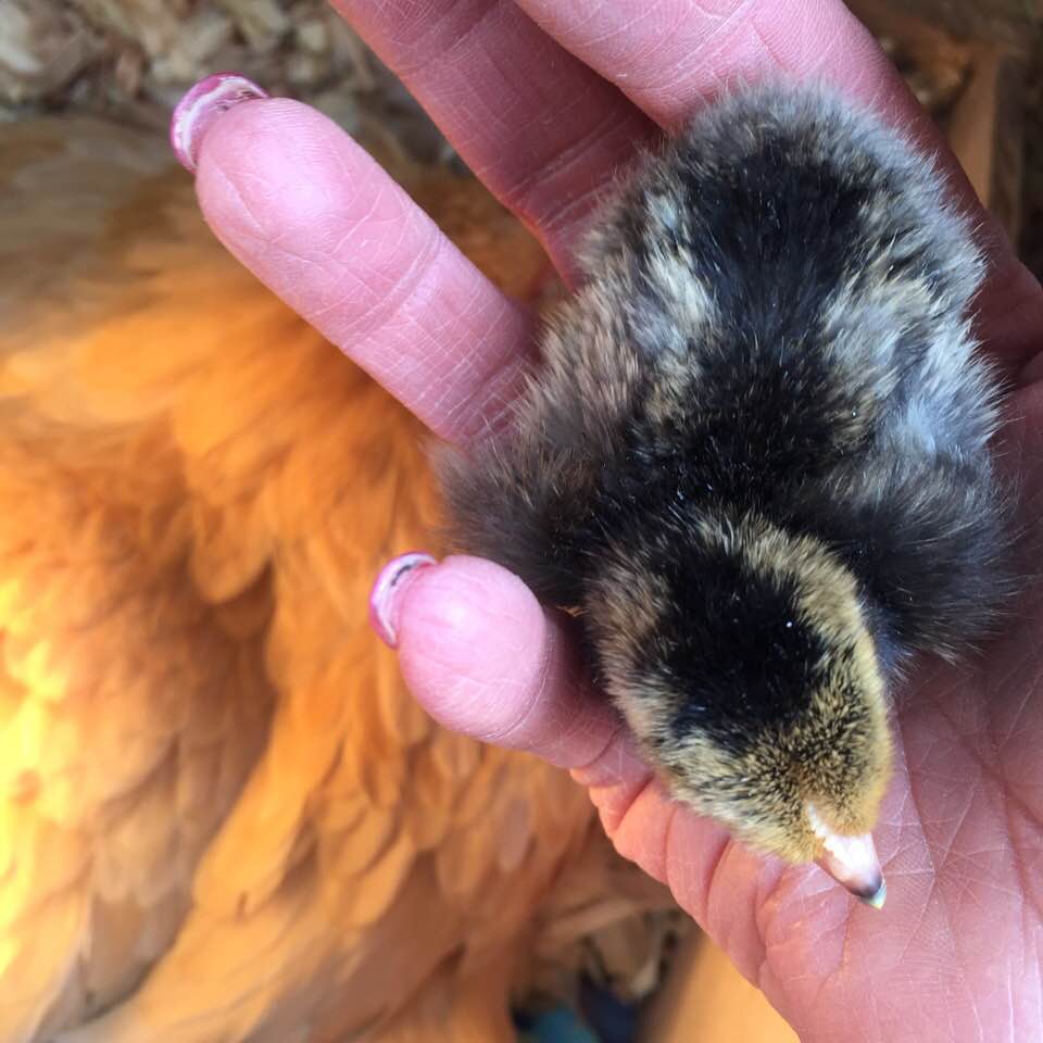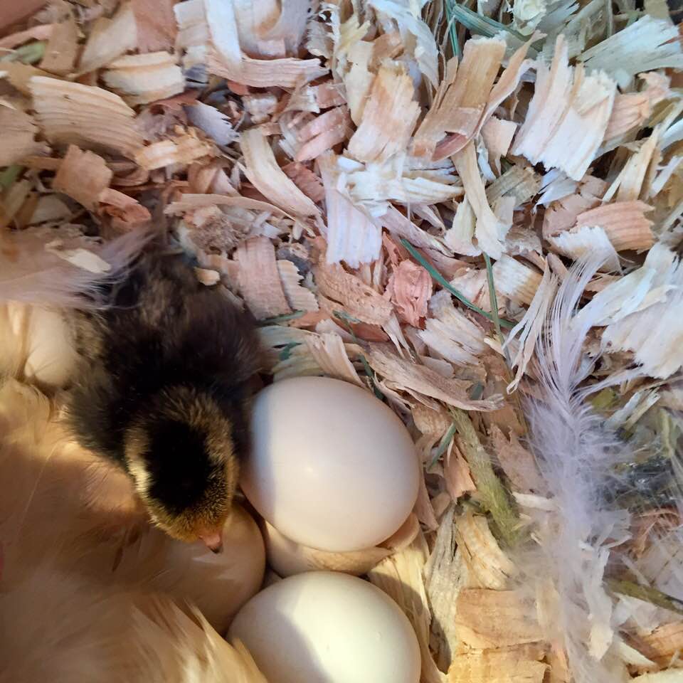 When day 21 hit, just like clockwork, my first little chick appeared. I said to my hen, “Can I see your baby?” And she lifted up her wing to show me!