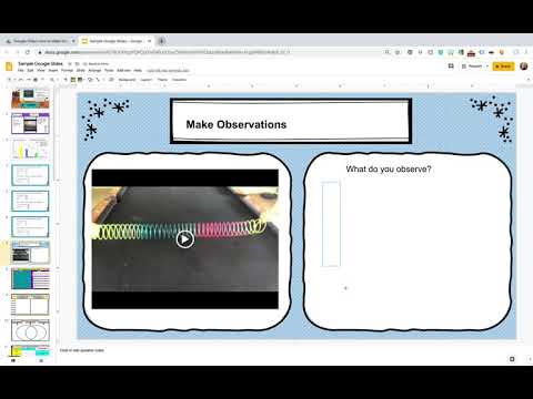 Here is an example. Students will watch the video and record their observations in the blue box. I have inserted a text box for students to write their answers in next to the video.