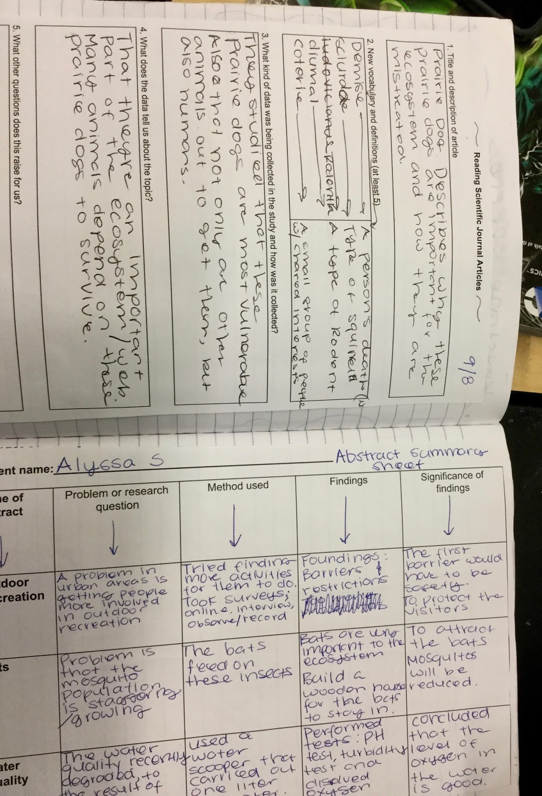 With the school and the students’ permission I took some photos of their interactive notebooks and asked them some questions about their work. They were enthusiastic and proud of their work. The students recorded information, and processed their thinking.