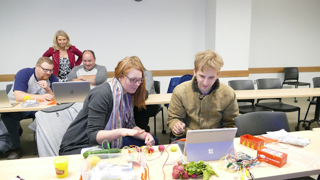 Recently I had the opportunity to guest teach in a Coding for Teachers Class. I was asked to introduce them to Makey Makey.