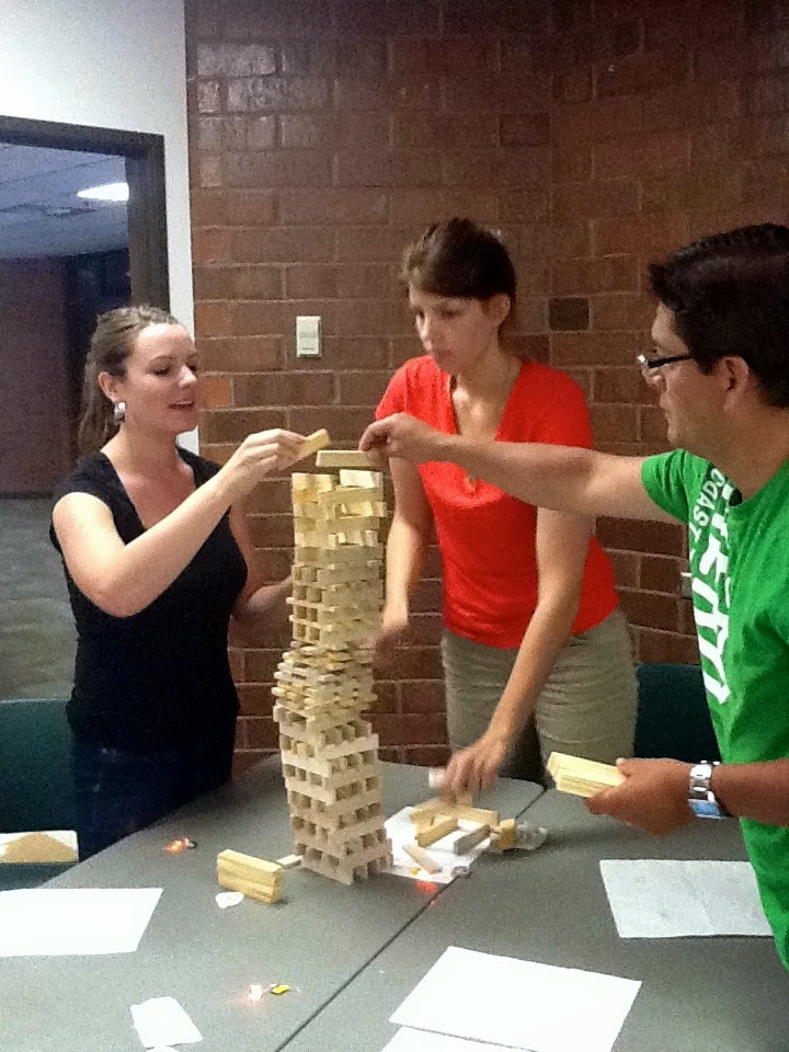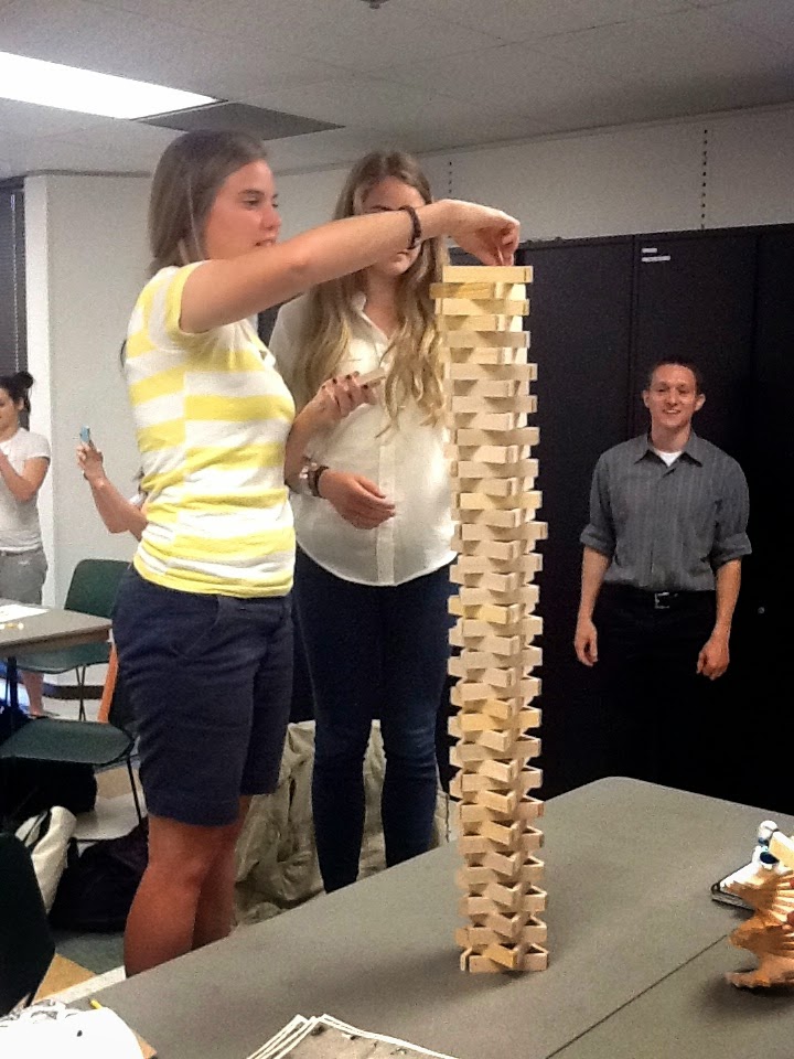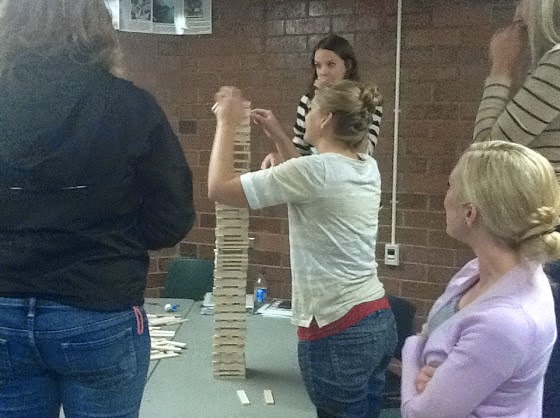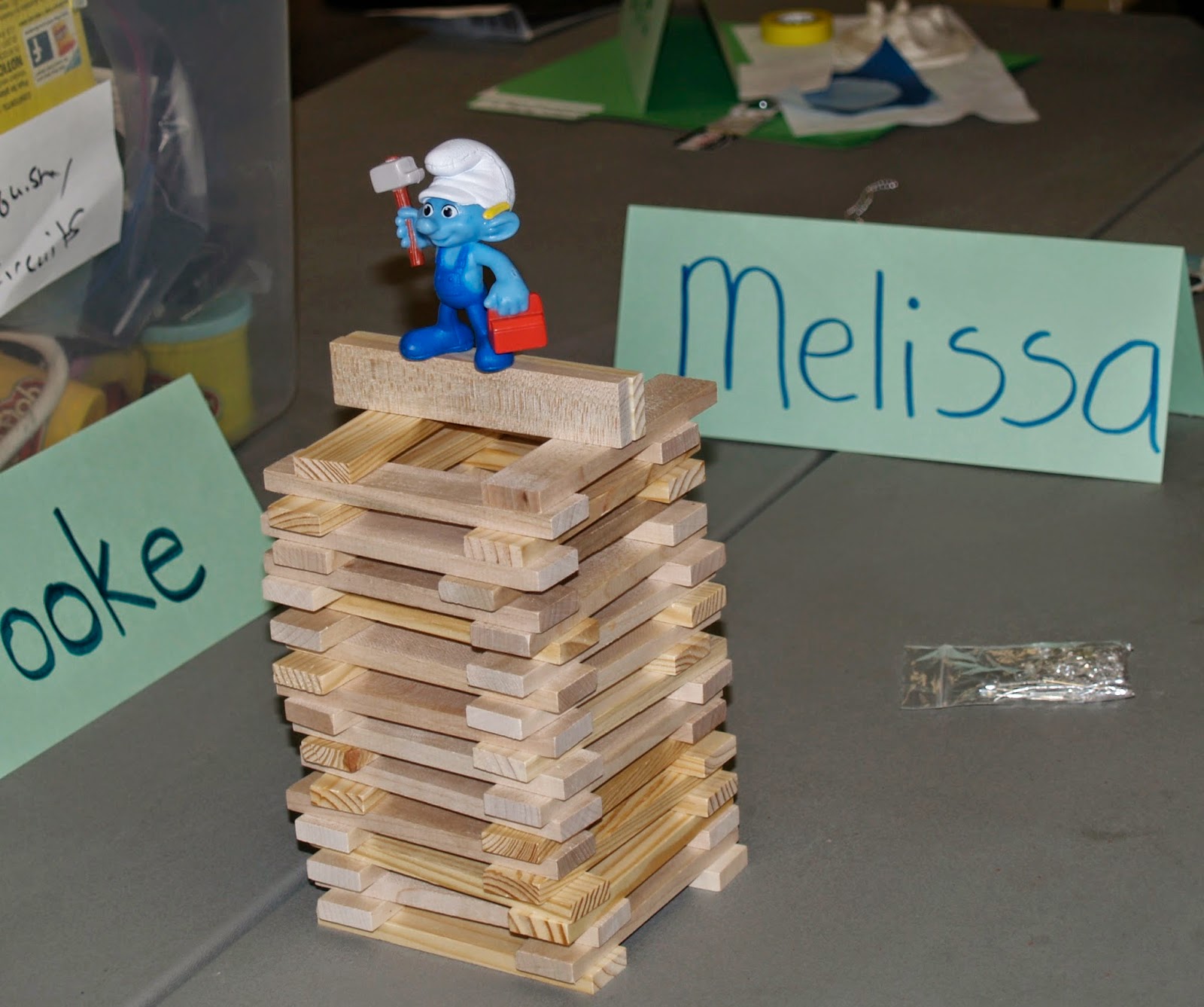 Challenge: Build a the tallest Tower of Keva Planks that can support a Smurf or Sponge Bob.