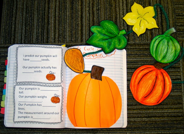 A nonfiction article on the life cycle of pumpkins with response pages: