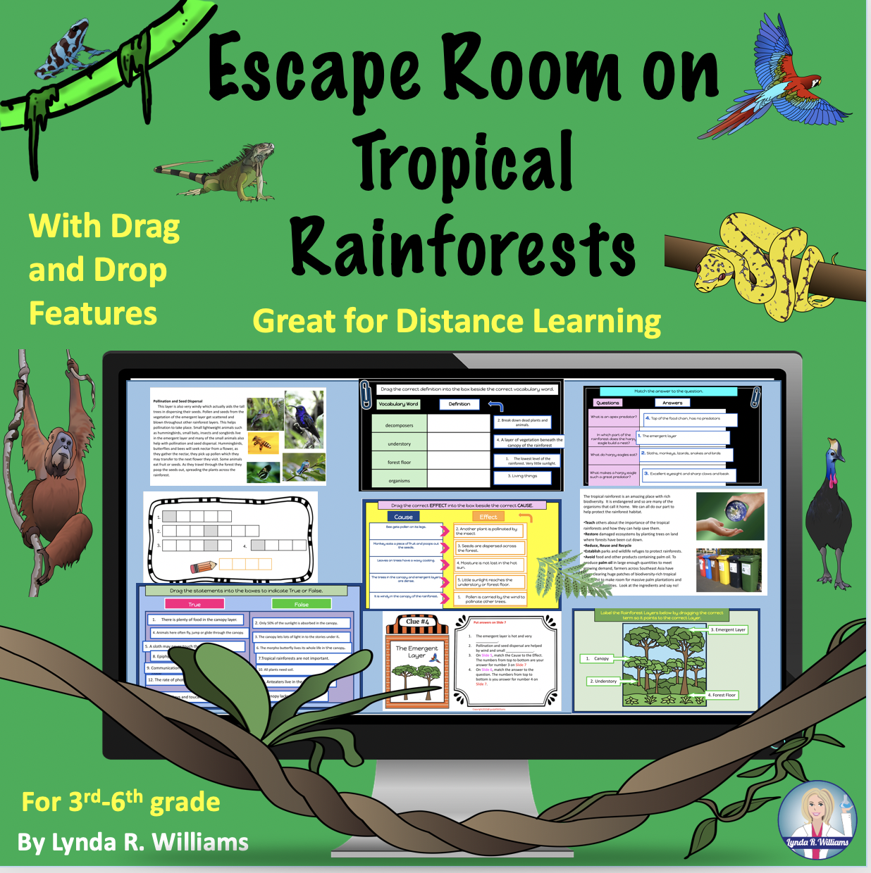 This resource is a digital Escape Room on tropical rainforests. It can be used for Distance Learning! Students will read informational text on tropical rainforests. Students will love learning about all the biodiversity in the unique habitat of the rainforest. This resource is online and self-checking. Students won’t be able to escape the room unless they have the correct answers. Incorrect codes are prompted to Try again! Really no prep for teachers! Just share the link. Great for remote learning. This is an online interactive activity. It works great with google classroom, but can also be shared with just a link.