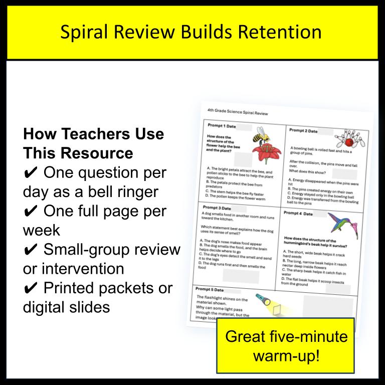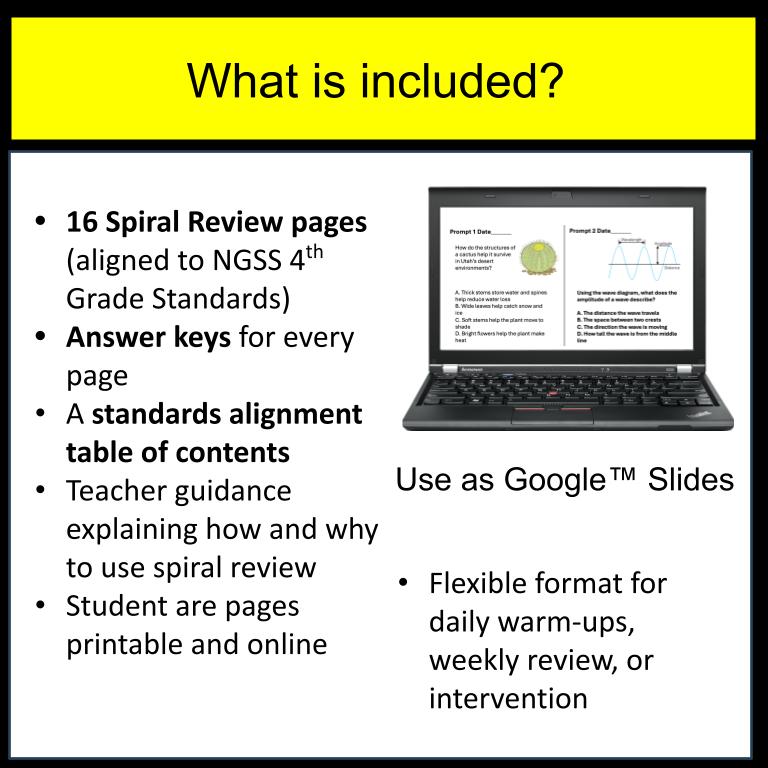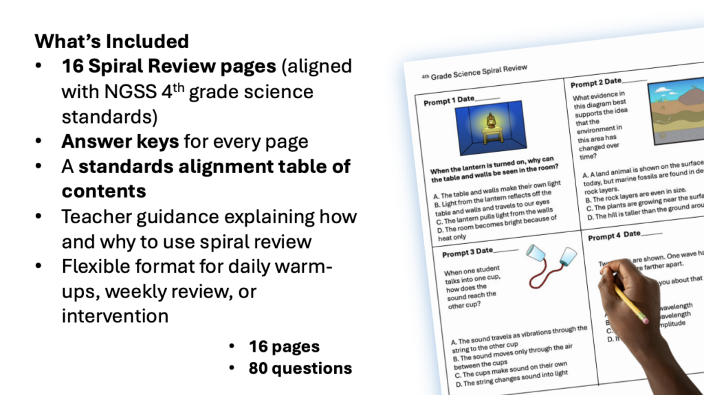 - 16 NGSS-aligned 4th-grade spiral review pages
