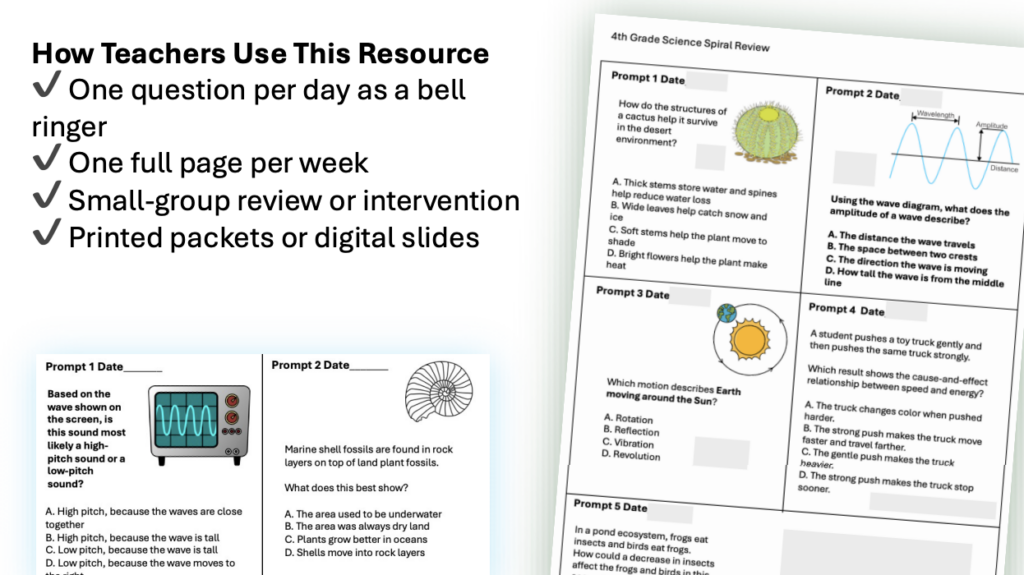 If you are looking for a simple, flexible way to keep NGSS science concepts fresh all year, this spiral review resource fits easily into your classroom routine.