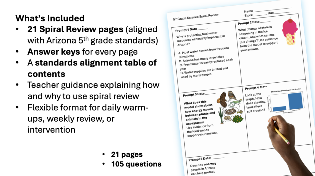 If you want a simple, effective, and standards-aligned way to keep science concepts fresh all year, this Arizona 5th Grade Science Spiral Review is a reliable, low-stress solution you can use again and again.