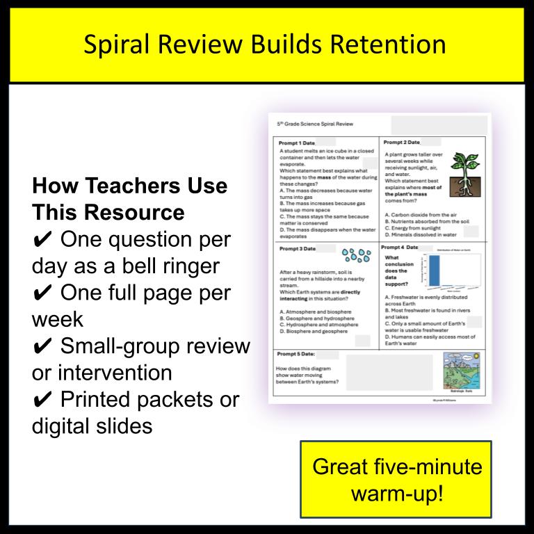 If you’re looking for an easy-to-use, TEKS-aligned 5th-grade science review that fits smoothly into your schedule and supports STAAR science prep, this spiral review is ready to use in your classroom.