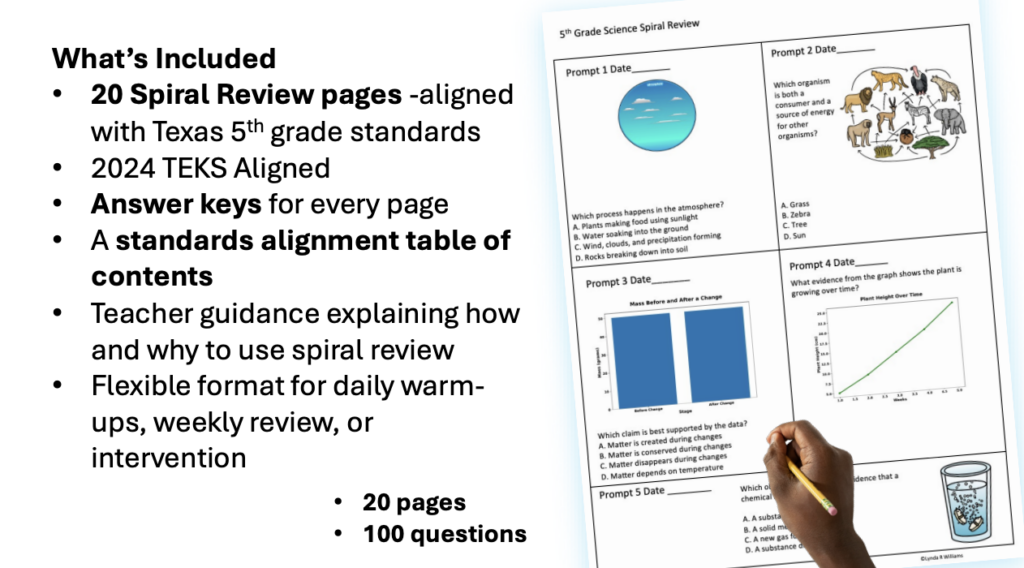 - Questions aligned to the 2024 Texas TEKS for 5th-grade science