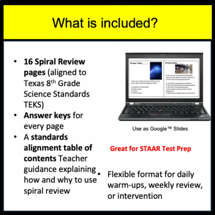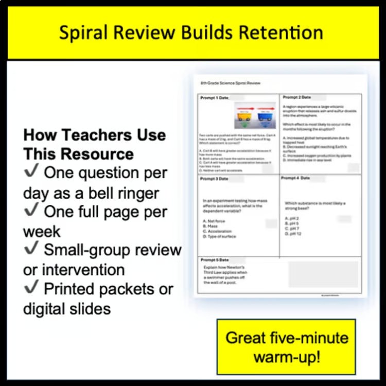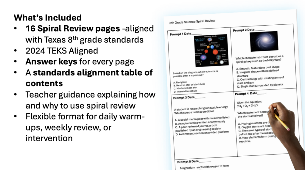 If you want consistent, TEKS-aligned practice that supports real understanding and builds confidence before STAAR, this Texas 8th Grade Science Spiral Review is designed for you.
