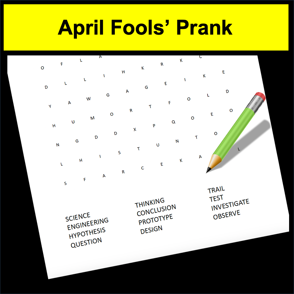 Want to play a prank on your students? Tell them they will look for these science words on a word search! The words listed for them to find are question, observation, science, experiment, etc. HaHa! None of those words are in the word search!