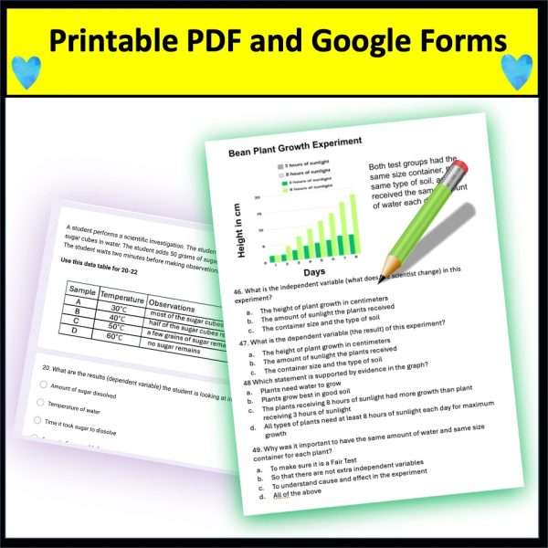 This is a practice test for Arizona 5th Grade Science Test Prep, which will help prepare students for taking the AzSci in 5th grade. If you need a practice test for 5th-grade science, you have found it! These questions require students to analyze data, read carefully, look at diagrams and graphs, and practice choosing the best answer. There are 39 questions! These are my Level II Questions and work nicely with my Level I Questions. Aligned with Arizona Science Standards!