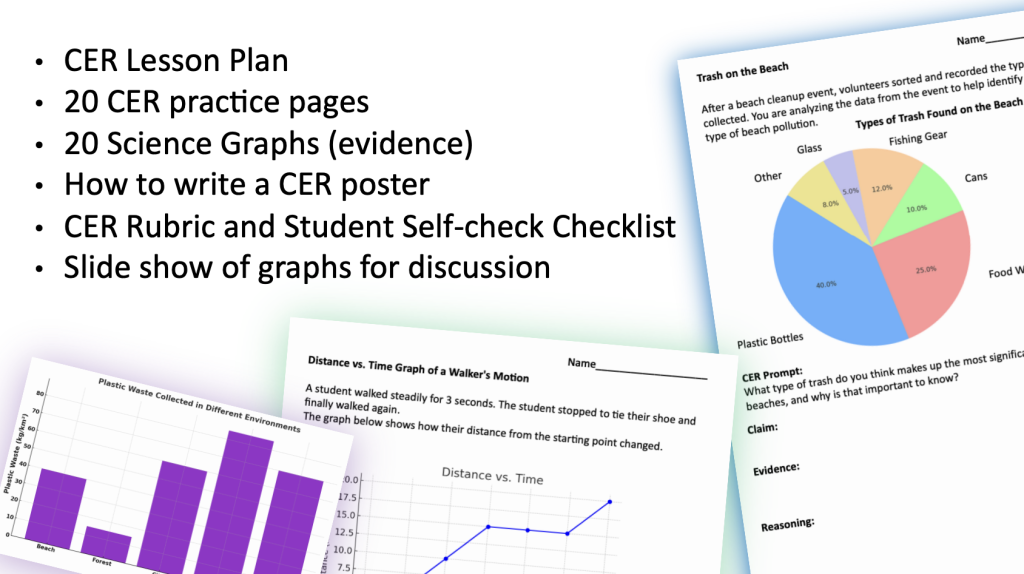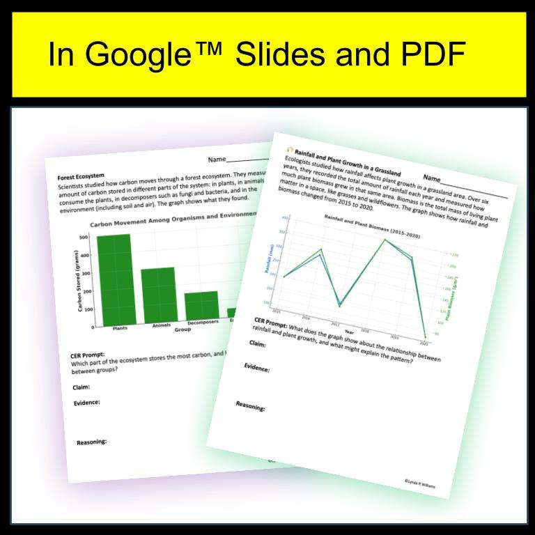 CER Graph Pages: Enhance your 5th Grade science curriculum with this comprehensive set of Claim-Evidence-Reasoning (CER) activities, meticulously aligned with the Next Generation Science Standards (NGSS). Designed to foster critical thinking and scientific literacy, this lesson guides students through constructing well-supported scientific arguments. Students will use Graphs as Evidence!