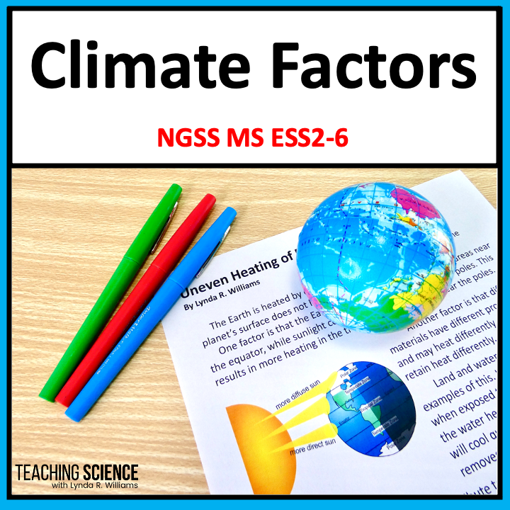 The uneven heating of the Earth is due to several factors that will be explored in this unit. Students will make a model to show their understanding of the uneven heating of Earth’s surface and how this influences weather and climate. This unit is designed to teach the NGSS MS ESS2-6 Develop and use a model to describe how unequal heating and rotation of the Earth cause patterns of atmospheric and oceanic circulation that determine regional climates. This is from the Earth”s Systems strand. This resource is just what you need to show students how materials on the Earth are heated unevenly due to several factors. Each of these will be explored with an inquiry-based lesson in the 5 E format. Students will think critically while participating in labs. This unit explains these tricky concepts in a way that both teachers and students will understand that the Earth is heated unevenly and that this causes atmospheric conditions and regional climate. Watch the video and you can see one of the labs on convection currents. It is awesome!