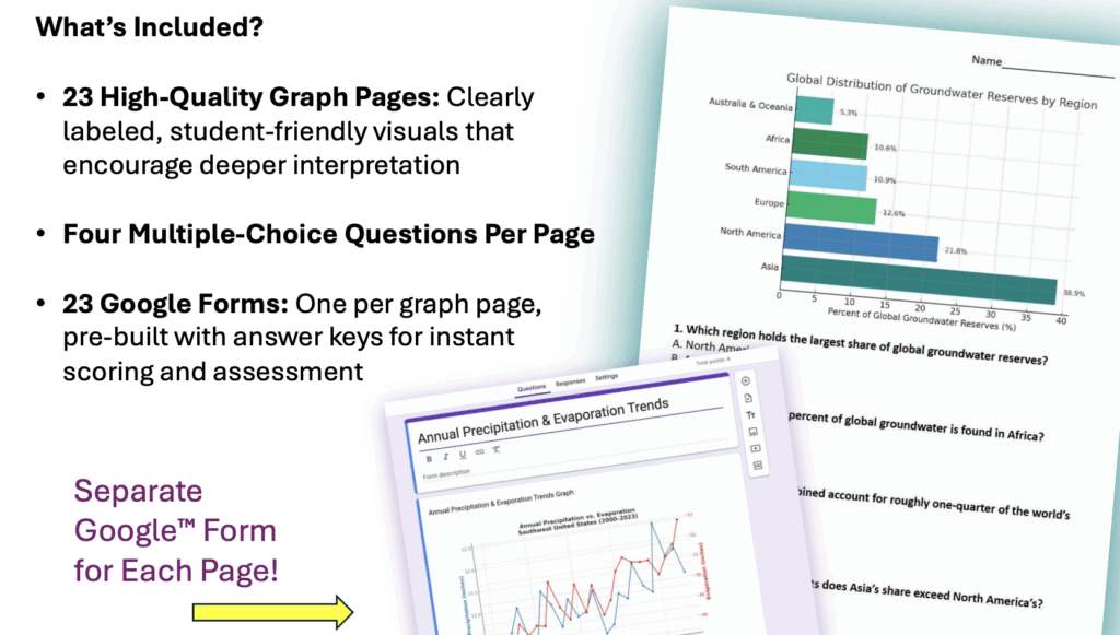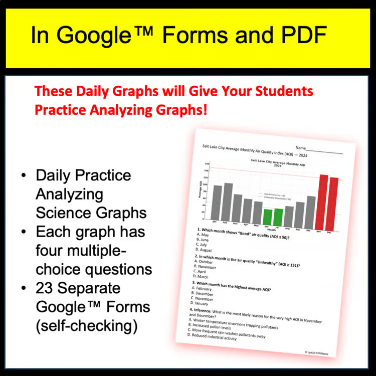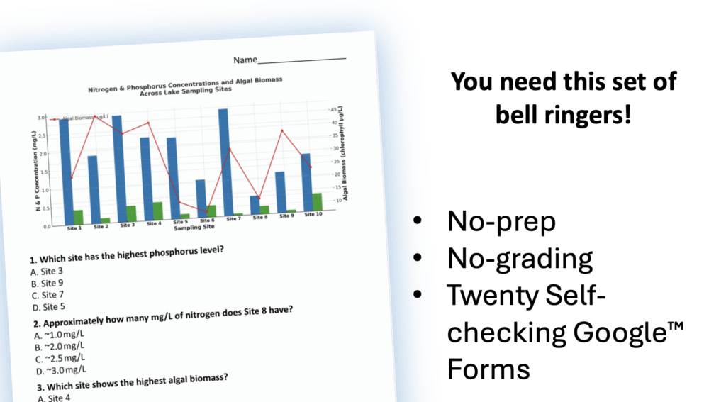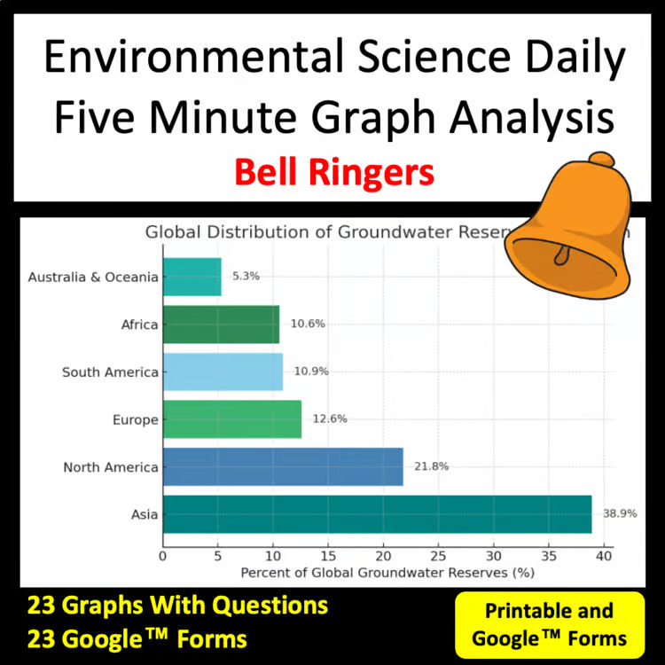 Give your students meaningful science warm-ups in just 5 minutes a day! These Environmental Science Bell Ringers are designed to build students’ data analysis skills through quick, engaging graph practice. Each bell ringer features a graph with four multiple-choice questions that focus on interpreting data, identifying trends, and applying environmental science concepts.