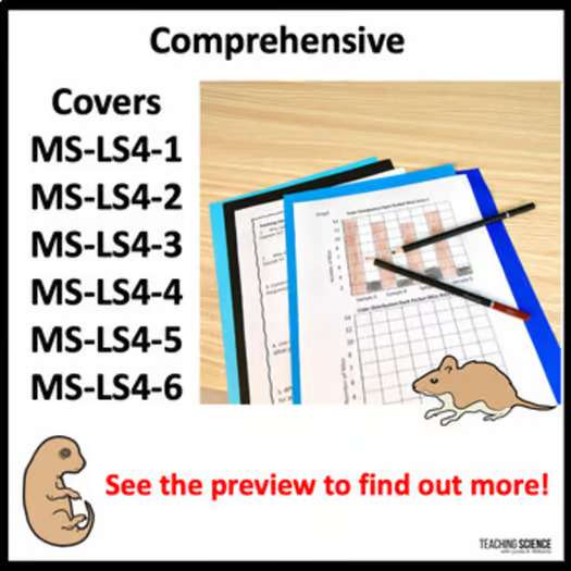 This evolution bundle covers all the middle school science standards in the biological evolution strand. Students will learn about natural selection, selective breeding, comparative anatomy, comparative embryology, and the fossil record. Students will examine the evidence of evolution. You save 20% by purchasing the evolution bundle. ❤️