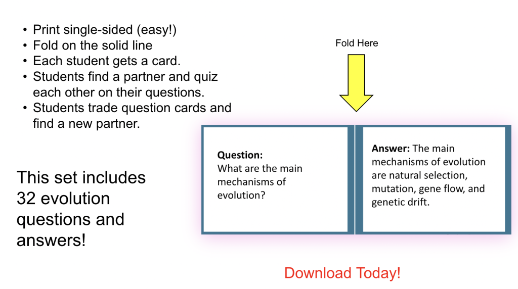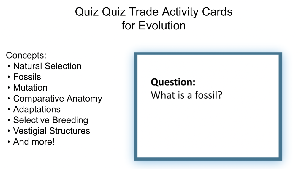 Are you looking for a way to get your students up and moving to review concepts around evolution You will love this Quiz and Trade Strategy! There is no writing; students will be up and moving, reviewing questions. It includes a lesson plan for how to do the Quiz and Trade activity.