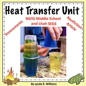 Heat Transfer Unit: Students will learn about conductors, insulators, convection currents, conduction, and radiation in this heat transfer complete unit. Students will love making a solar oven among other hands-on experiments and heat transfer labs. This resource is a complete unit for teaching the concepts of heat transfer. It includes 4 labs and 2 additional engineering activities, a two-page informational text article explaining heat transfer, response pages, interactive notebook flaps, and more. Students will learn about conductors, insulators, convection currents, radiation, and conduction in heat transfer for middle school. Students will love the heat transfer lab and heat transfer foldable. Students will be using STEM engineering skills to create a tool related to heat transfer.