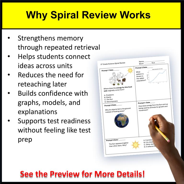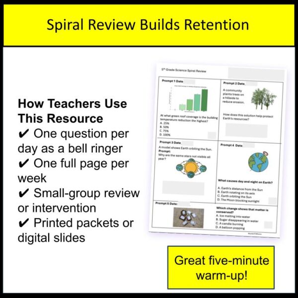 Whether you’re preparing for spring testing or looking for year-long 5th-grade science test prep, this spiral review provides consistent, low-stress practice that fits easily into any classroom routine.