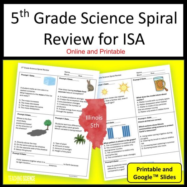 This Illinois ISA Science Test 5th Grade Spiral Review is designed to give students consistent, meaningful practice with the science skills they need for 5th-grade ISA science test prep—without extra planning or prep time.