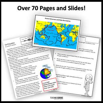 Do you need to teach about Natural Hazards? This resource has students analyzing and interpreting data on natural hazards. This resource includes a slide show on natural hazards and natural disasters. Students will analyze data from maps to look for patterns. Students will look at how scientists use data to mitigate the effects of natural hazards. Natural hazards such as earthquakes, tsunamis, storms, floods, wildfires, volcanic eruptions, and the spreading of infectious diseases will be discussed. This is a HUGE Resource with over 70 slides and pages!