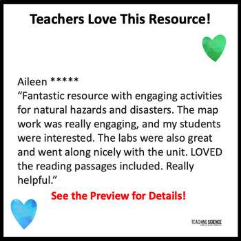 “Fantastic resource with engaging activities for natural hazards and disasters. The map work was really engaging and my students were interested. The labs were also great and went along nicely with the unit. LOVED the reading passages included. Really helpful.”