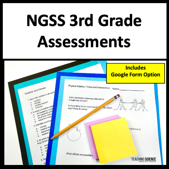 This is a set of NGSS Assessments for all of the third-grade standards. This assessment is in both Google Forms and pdf versions. The assessments include multiple-choice questions and short answers. There is a printable PDF and also 6 Google forms, one for each DCI. This resource will help you assess your students in science and prepare them for end-of-year testing.