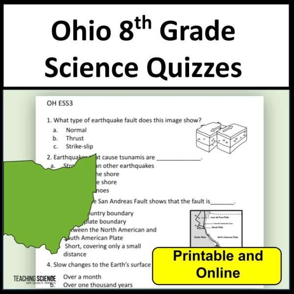 Do you teach 8th-grade science in Ohio? You will love these quizzes. There is a quiz for each Ohio 8th-grade science standard. The quizzes are printable and also in Google™ forms. Science review and test prep made easy! Great for formative assessments.