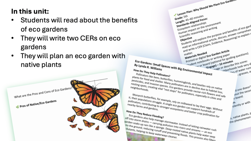 Do you want your students to understand and be able to articulate how eco gardens and pollinator gardens can improve habitats and mitigate flooding, all while being sustainable? –This resource is for you!