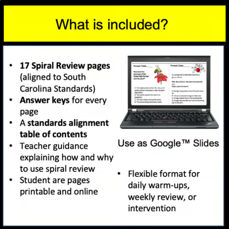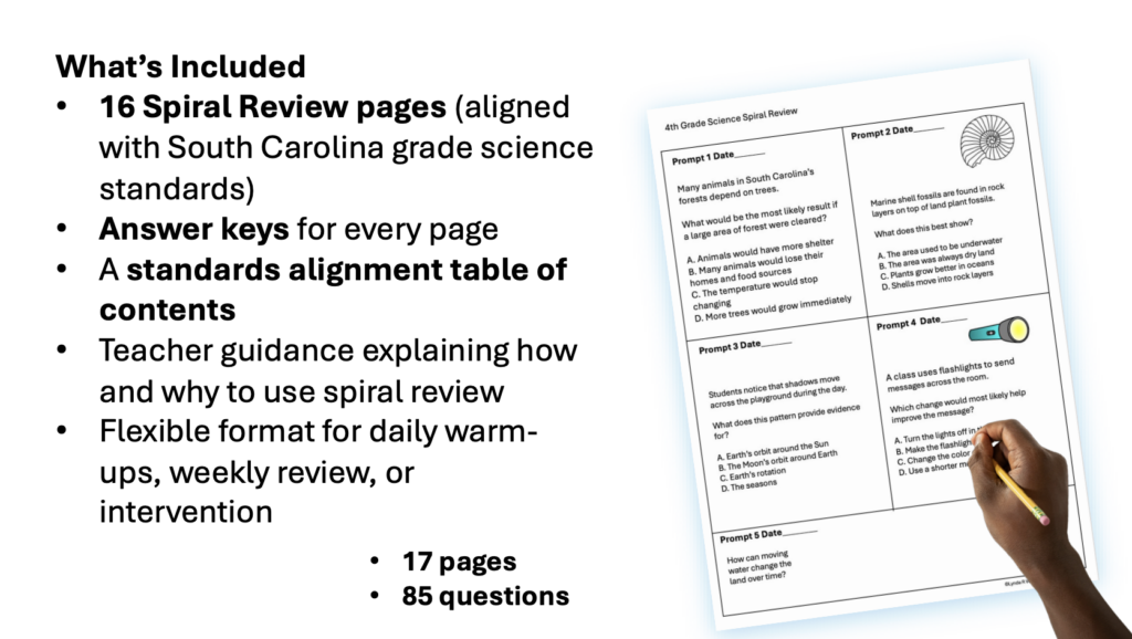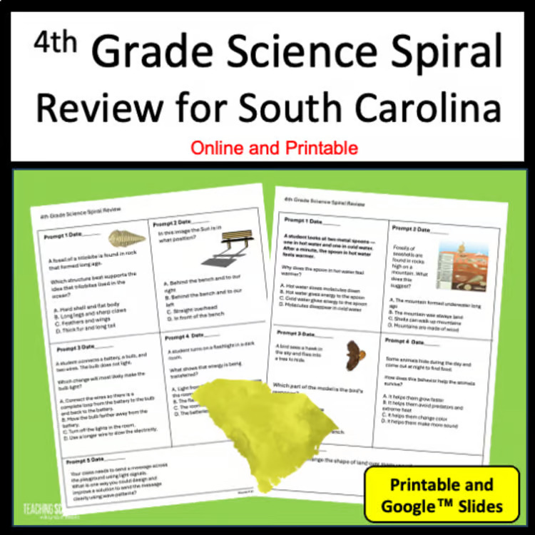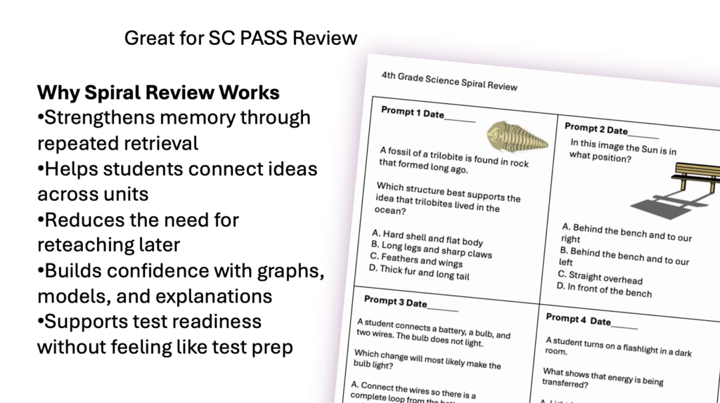 This spiral review is designed specifically for South Carolina PASS 4th-grade science and provides an efficient way to keep standards fresh while reinforcing what you are already teaching.