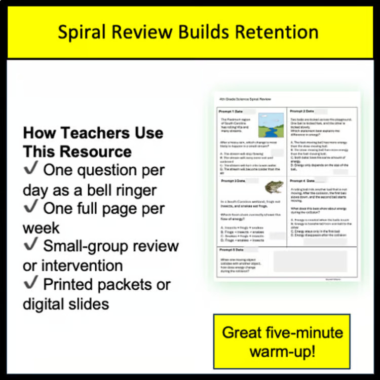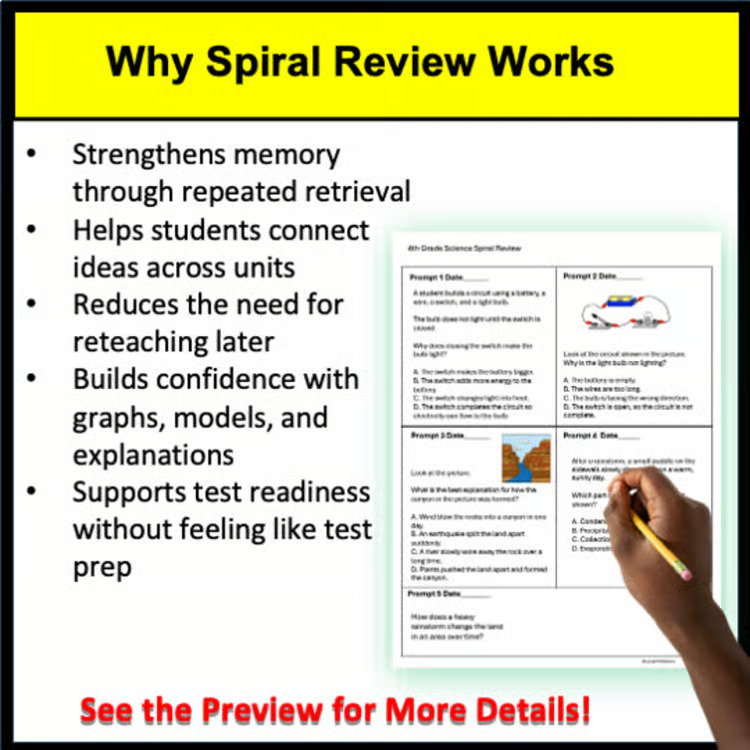 This South Carolina PASS 4th Grade Science Spiral Review was created to provide students with short, focused, and consistent practice on the exact science concepts they are expected to master in South Carolina classrooms.