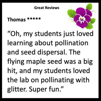 Oh, my students just loved learning about pollination and seed dispersal. The flying maple seed was a big hit and my students loved the lab on pollinating with glitter. Super fun.