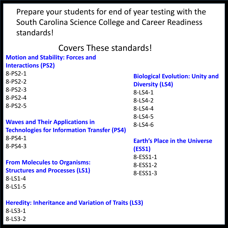 ???? This resource is aligned with the following standards for South Carolina Eighth Grade
