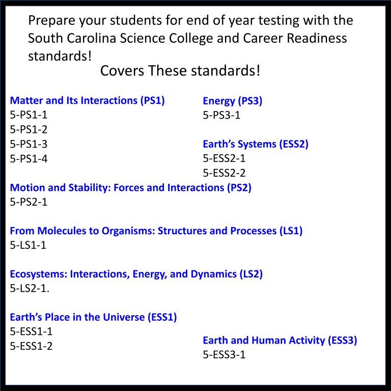 ???? This resource is aligned with the following standards for South Carolina Fifth Grade Assessments.