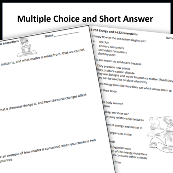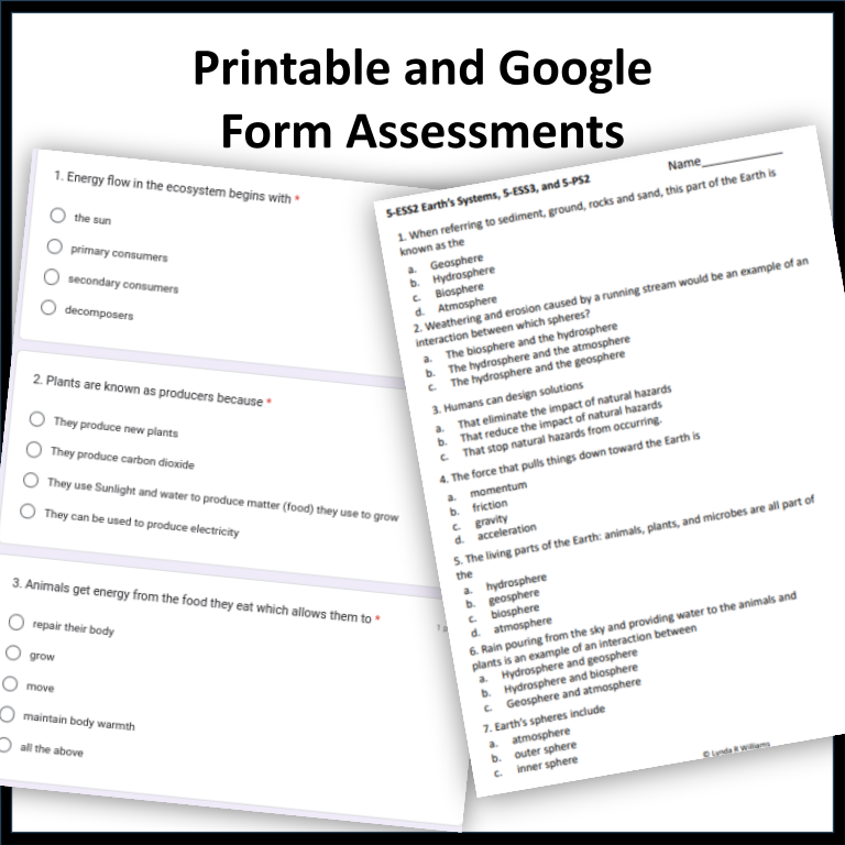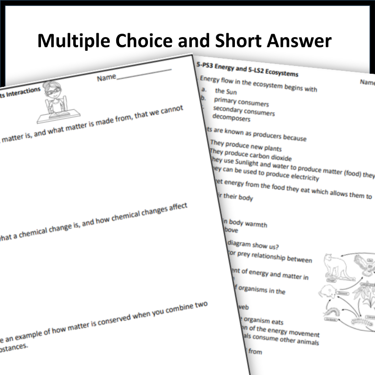 This resource is a set of assessments for all of the SCCCR Science Standards for Fifth Grade. It covers all the standards in the Fifth grade strand including Matter and Its Interactions, Motion and Stability: Forces and Interactions, From Molecules to Organisms: Structures and Processes, Ecosystems: Interactions, Energy, and Dynamics, Earth’s Place in the Universe, Energy, Earth’s Systems, Earth and Human Activity. These assessments include multiple-choice and short-answer questions. You can use these after teaching each standard for assessment or as practice and review at the end of the year. Answer Keys are included. Links to Google Forms are in a PDF.