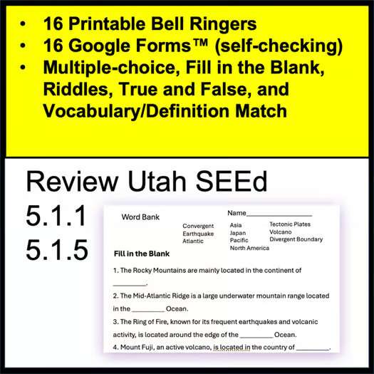 Do you teach 5th grade in Utah? You will love these science bell ringers for Utah SEEd 5th grade. This set covers Utah SEEd standards 5.1.1 and 5.1.5. Each science bell ringer comes in both a printable and Google Form. There are sixteen days of bell ringers in this set, and each bell ringer takes about 5 minutes to complete. The Google Forms™ are self-checking!!!