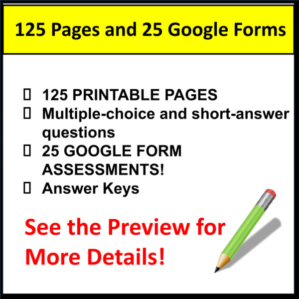 OVER 55 PRINTABLE STUDENTt PAGES AND 25 GOOGLE FORM ASSESSMENTS!