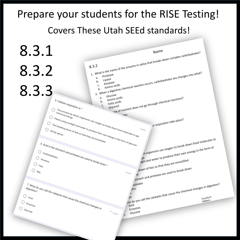 ✏️ Utah SEEd 8.3 Assessments: This resource is a set of assessments for the Utah SEEd 8.3 strand. It covers all the standards in the 8.3 strand including living things sustaining life, photosynthesis, and chemical reactions. These assessments include multiple-choice and short-answer questions. You can use these after teaching each standard for assessment or as practice and review at the end of the year. Answer Keys are included. Links to Google Forms are in a PDF.