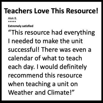 This resource had everything I needed to make the unit successful! There was even a calendar of what to teach each day. I would definitely recommend this resource when teaching a unit on Weather and Climate!